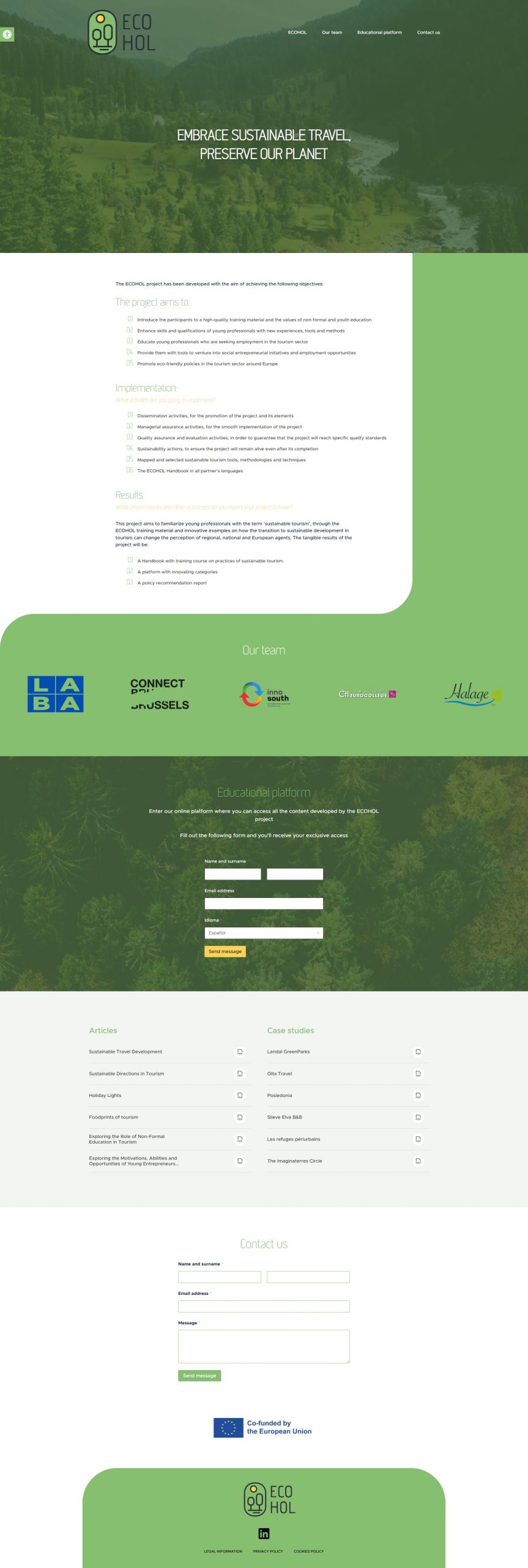 La creación de Ecohol resultó en una plataforma efectiva para promover el turismo sostenible. La implementación con WordPress permitió una gestión eficiente del contenido y la inclusión de plugins de traducción y accesibilidad amplió el alcance y la usabilidad del sitio web. La estructura responsiva asegurada por Bootstrap garantizó una experiencia de usuario óptima en cualquier dispositivo.
